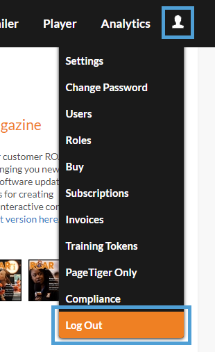 Logging out of PageTiger If you need to log out of your PageTiger account, the process is very straightforward. Select 'My Account'. Select 'Logout'. And that's it, it really is that simple!