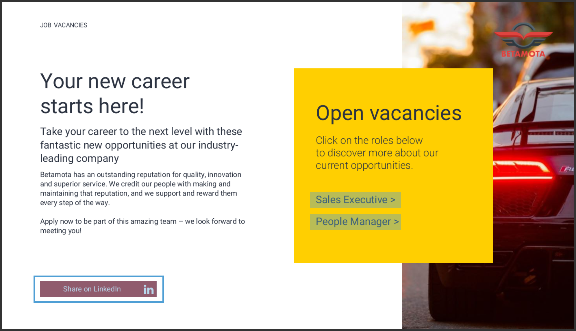 The 'Name' field is set by default, but it's important to update it to something unique that reflects the interactivity - for example, 'Share on LinkedIn', as it will be shown in the Analytics of you document.
