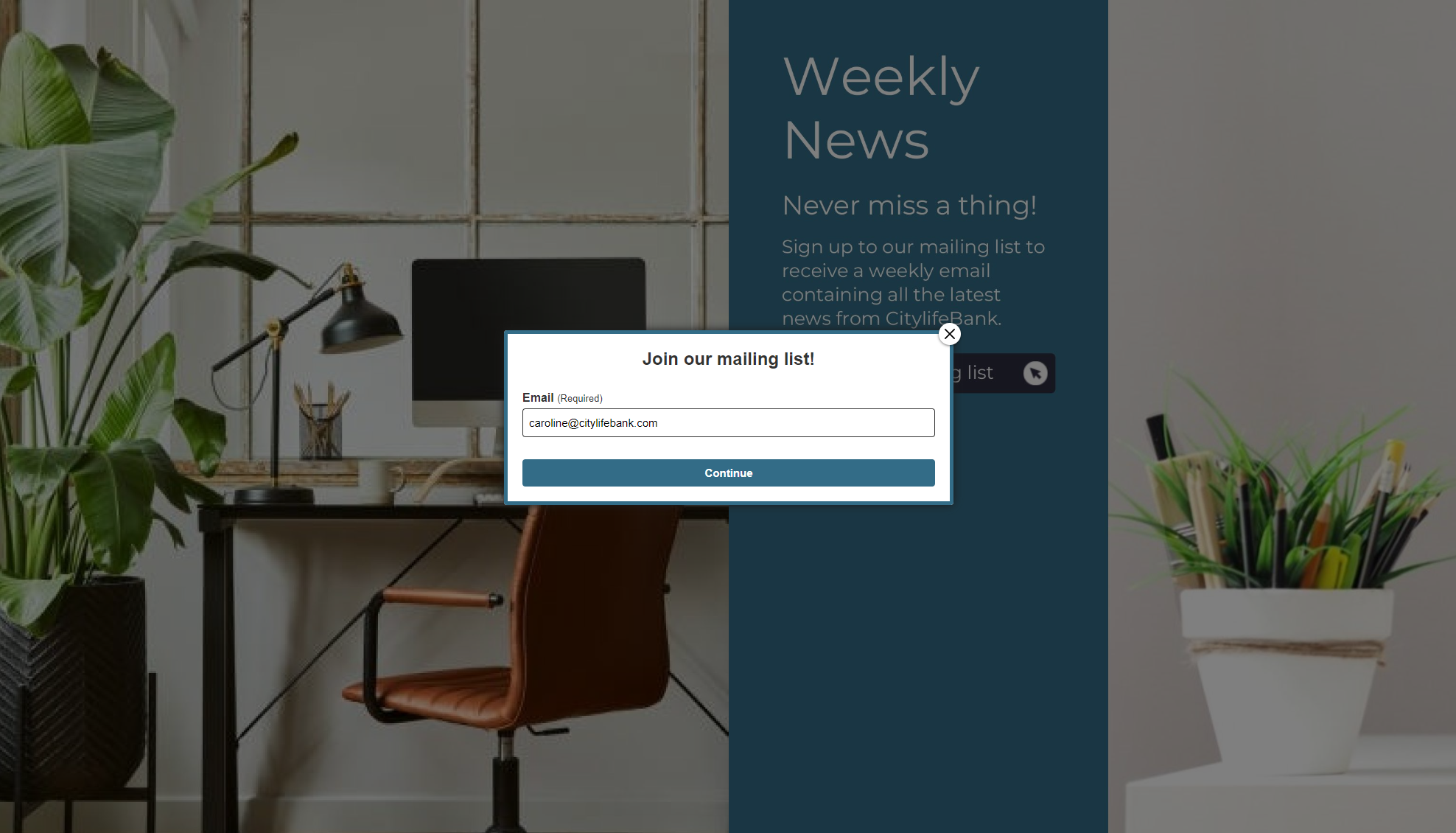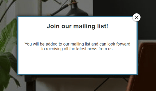 When your readers select the clickable area a pop-up box will open ready for them to enter their email address and confirm if they would like to be added to your mailing list.