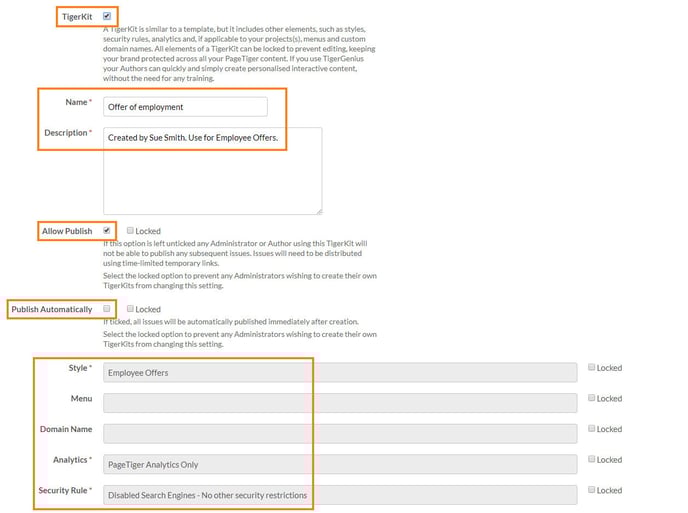 Tick the areas of the panel that you would like to be editable to a TigerGenius User.
