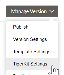 To begin, select the Manage Version, followed by TigerKit Settings.