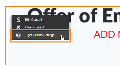 To make a module editable in TigerGenius, select it followed by the TigerGenius Settings option from the fly-out menu.