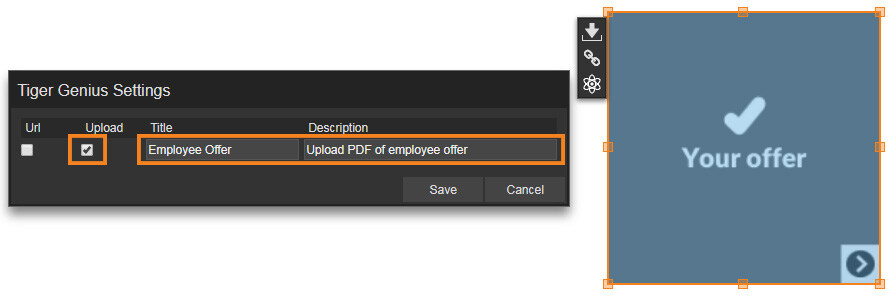 In the below example a Download PDF File module has been set as editable, so the TigerGenius User can upload a PDF when they use the TigerKit.
