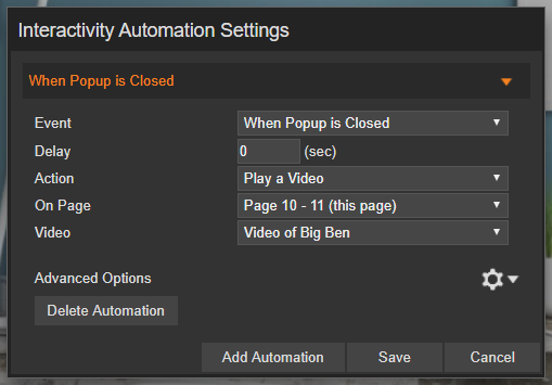 Automation is an exciting feature that makes it possible to automatically trigger Interactivity without the visitor having to select a clickable area on the page.