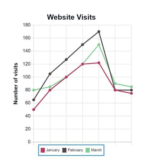 The Legend is an information box containing colour-keyed labels that helps your visitors understand what they are looking at, by explaining what each bar/line represents.