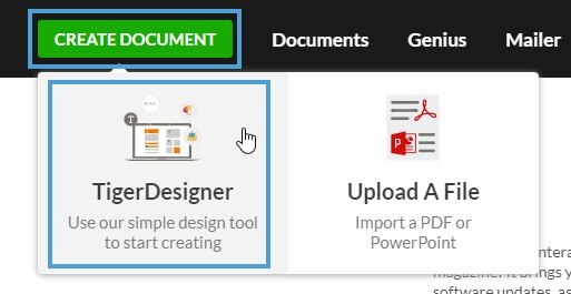 Select ‘Create Document’ from the main menu, followed by ‘TigerDesigner’.