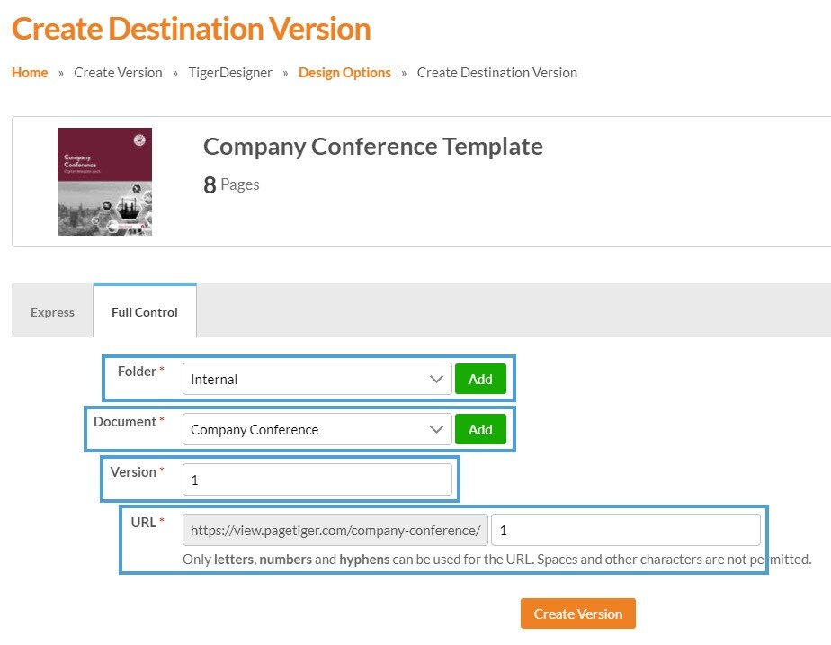 Select the ‘Create Version’ button.