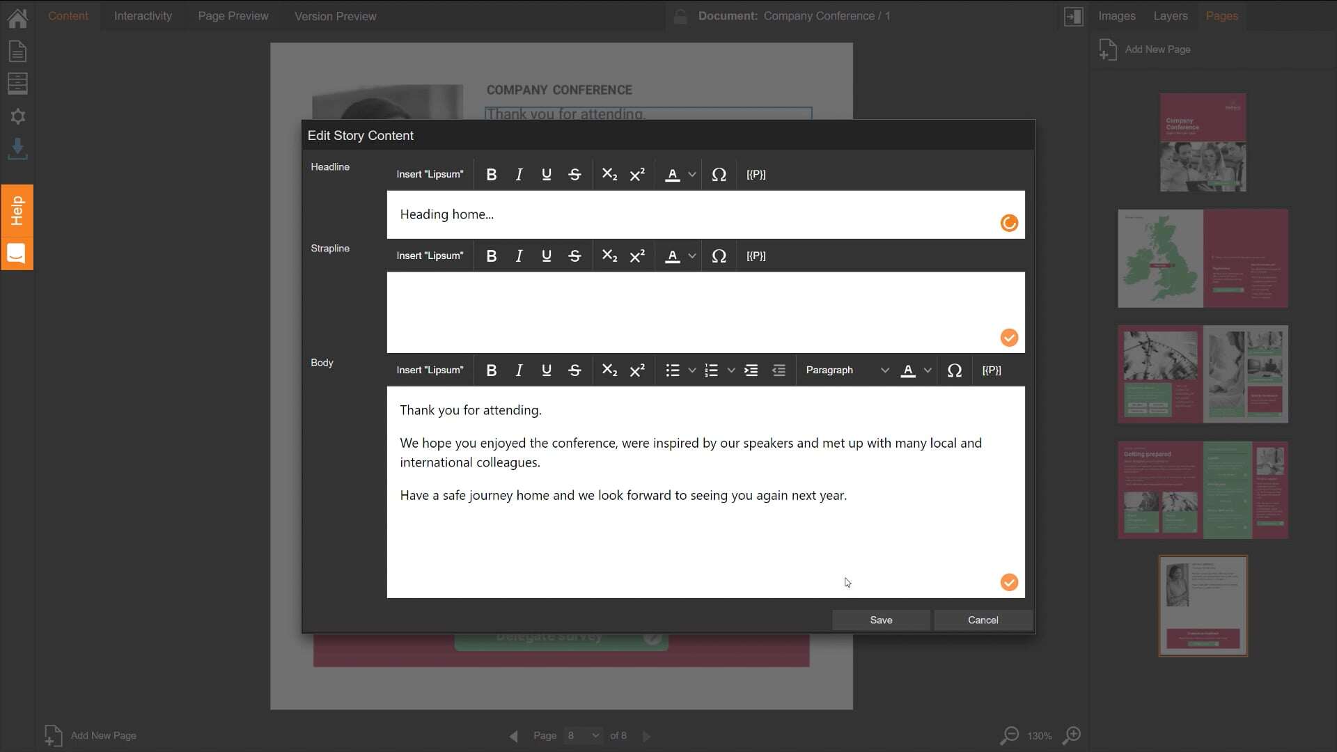 A digital document isn't a magazine, so it's important that the formatting reflects this. This is where the Layout Library is hugely beneficial, as all text panels and font sizes support best practice for digital viewing.