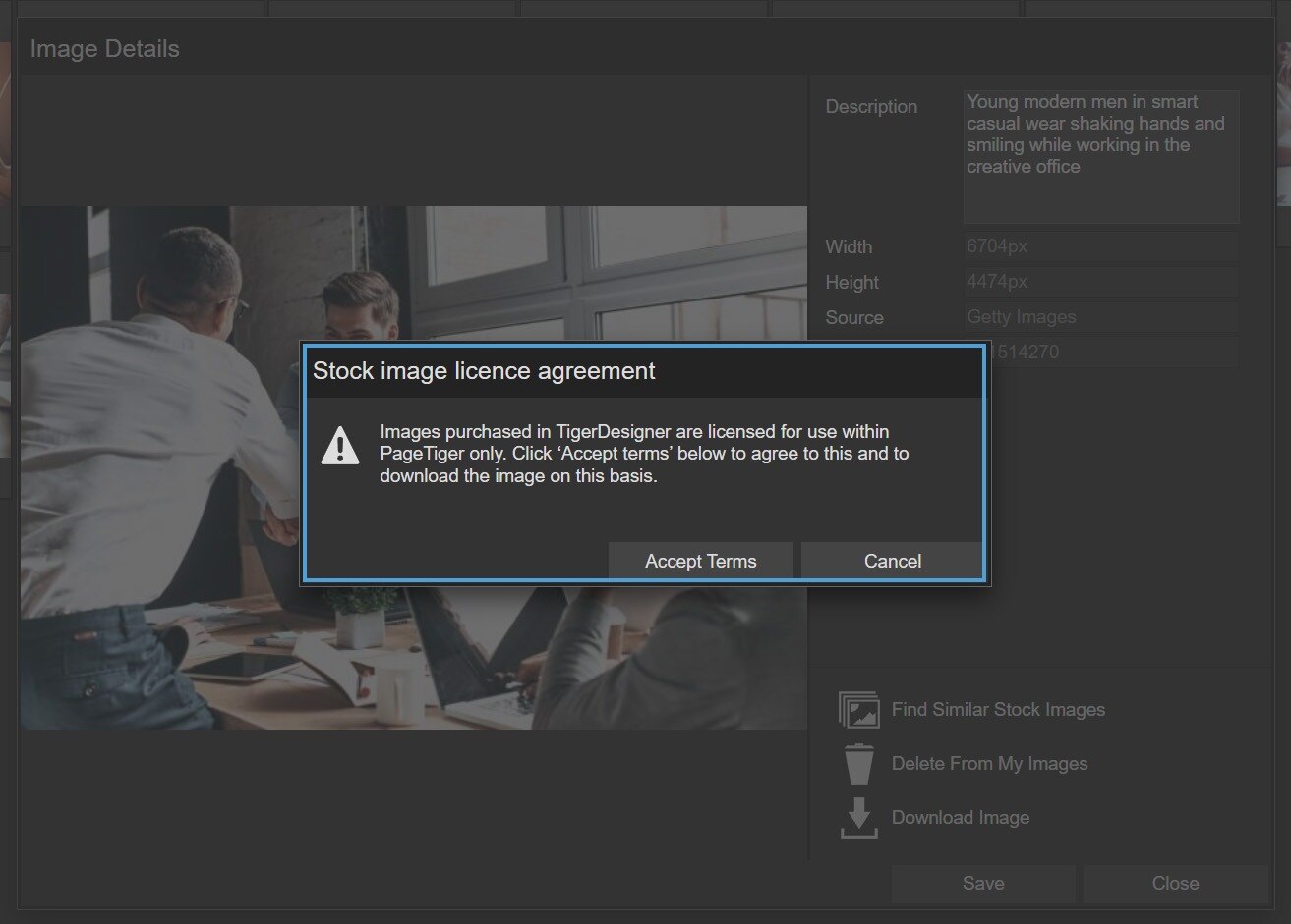Images purchase from the Stock Library are licensed for use with PageTiger only.