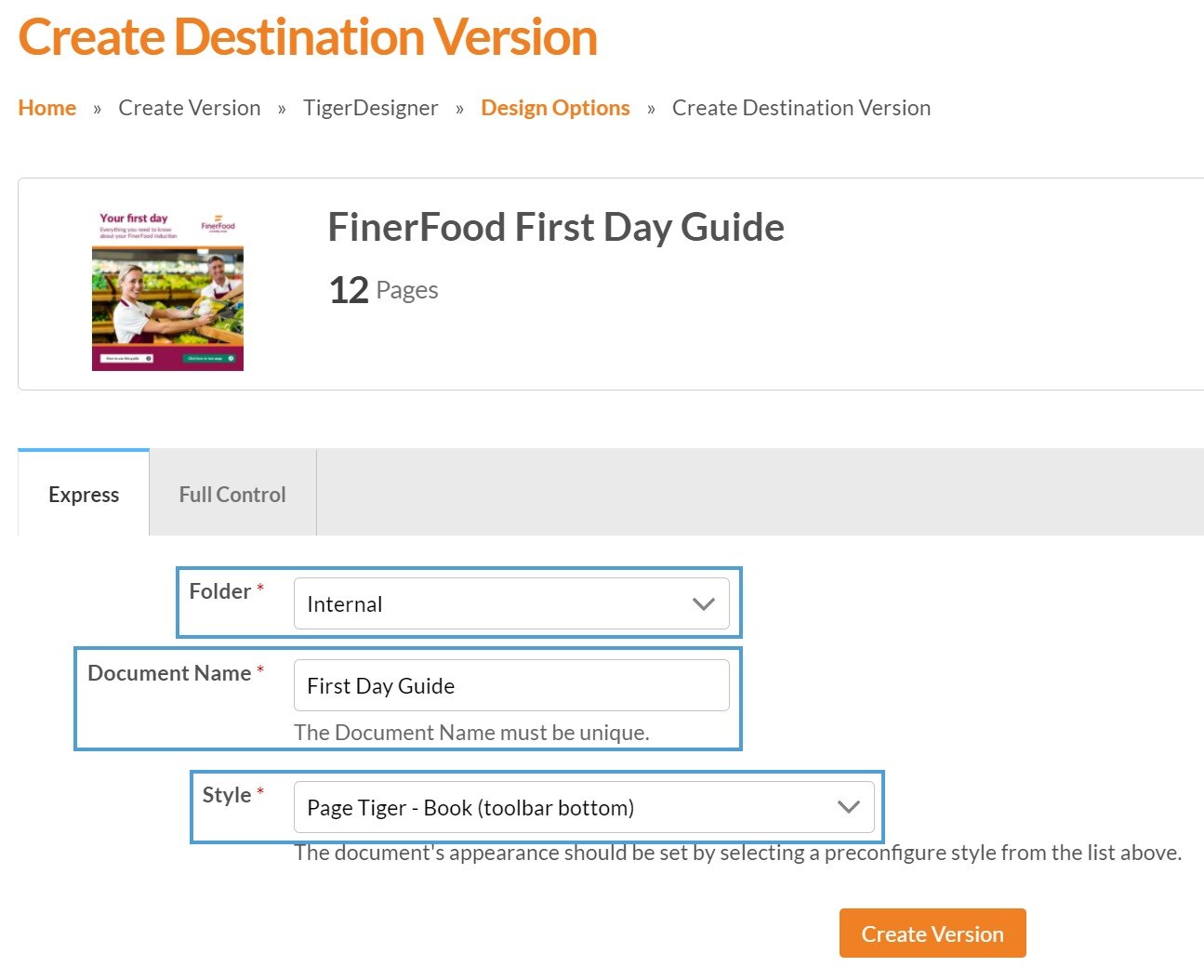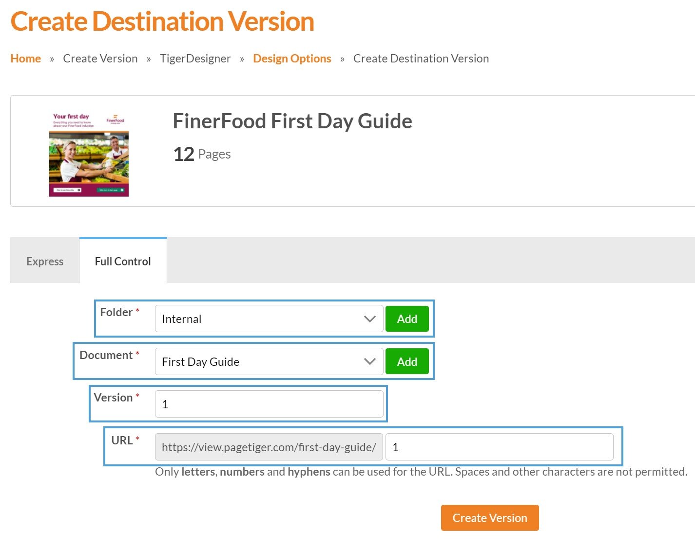 Select the ‘Create Version’ button.