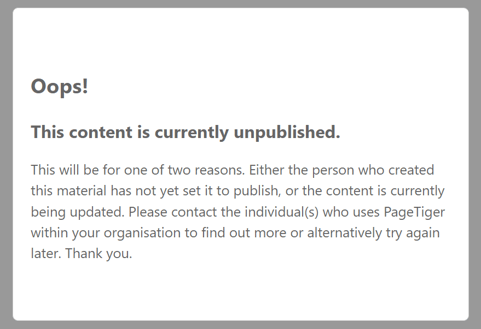 When a version is unpublished, visitors will be unable to view it and will instead see the below message.