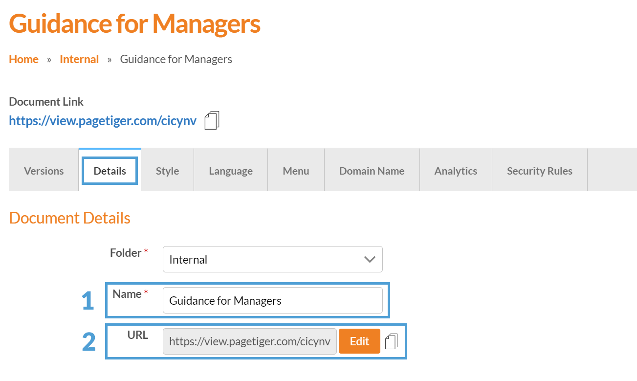 Navigate to the 'Document Management' page for your document and select the 'Details' tab.