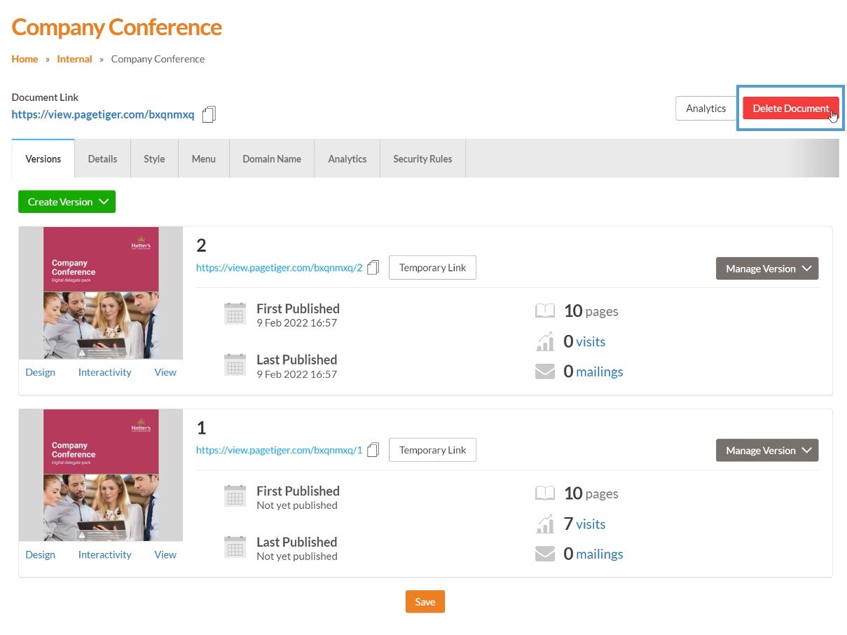 It’s important that you are completely sure when you want to delete a document, as it along with all of its versions cannot be restored.
