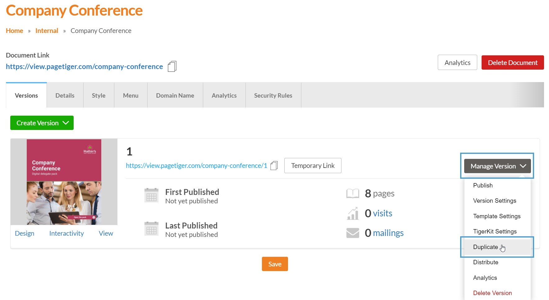 Select ‘Manage Version’ for the version you would like to duplicate.