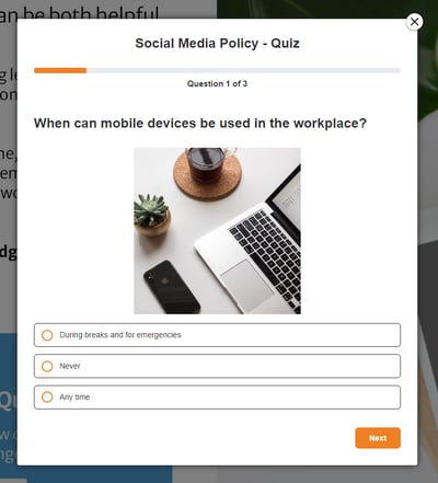The 'Name' field is set by default, but it's important to update it to something unique that reflects the interactivity - for example, 'Quiz - Social Media Policy', as it will be shown in the Analytics of you document.