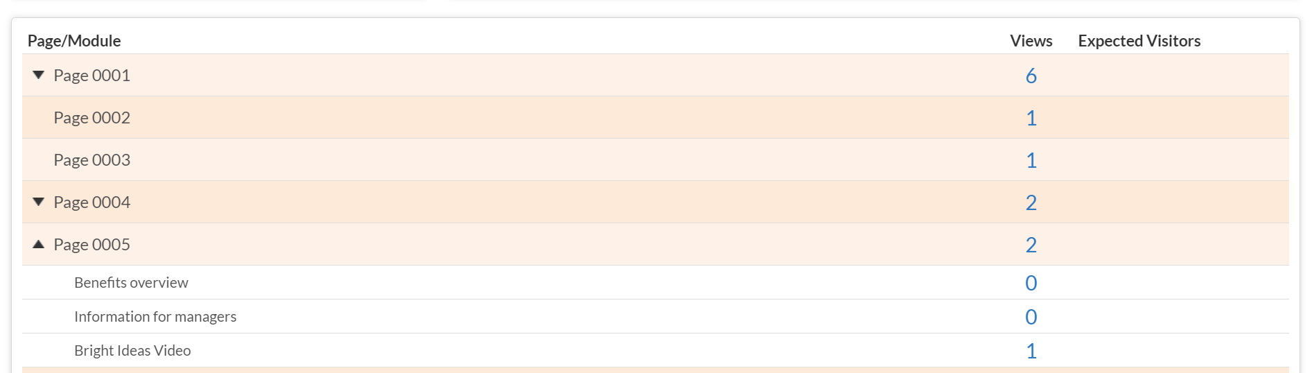 This section of the Version Dashboard is a fantastic way to drill deeper into the analytics as it’s possible to see the number of views each page has had as well as the data for any interactive elements it may contain.