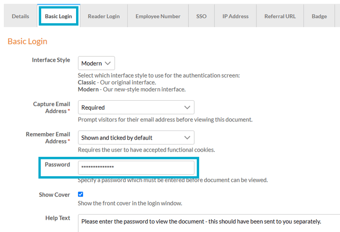 - Select the 'Show Cover' checkbox to display a thumbnail of the document cover on the login screen.