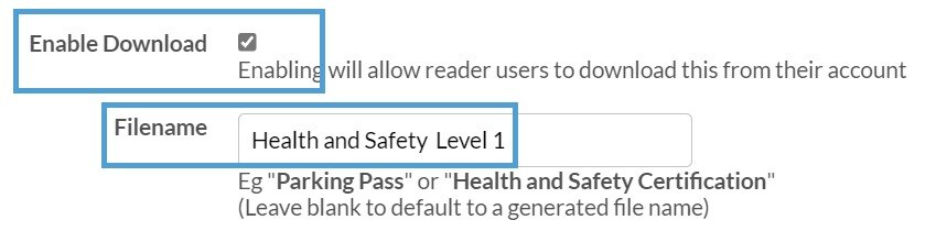 Tick this option if you would like the visitor to be able to download a copy of their certificate from their reader account.
