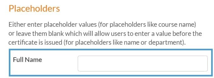A placeholder can be left empty which will allow the reader to fill it in before their certificate is generated, for example, their full name.