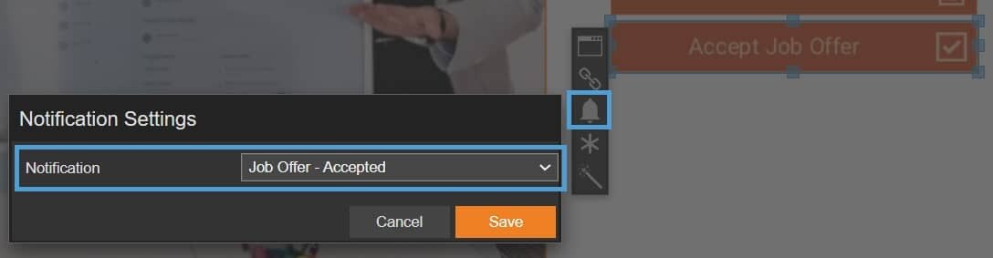 HR have sent out a job offer to Jane and would like to know when she accepts it. The job offer pack contains a More Information pop-up box that needs to be selected to accept, so they have added a Notification to it. Once accepted, an email will be sent to hr@citylifebank.com letting them know the good news. Simple!