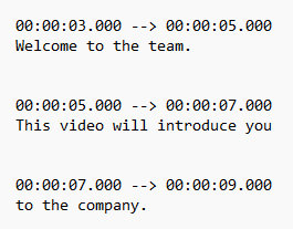 A .VTT file stores the subtitles of a video, along with the timing information. Each line represents a cue and includes the timestamp and line of text.