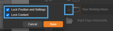 Selecting this option will lock the position and settings of the piece of Interactivity.