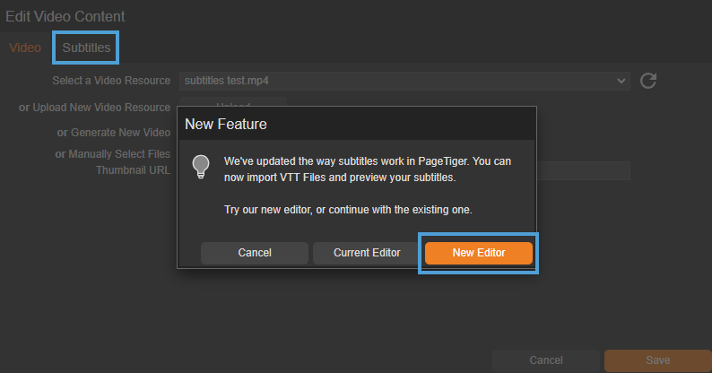Automatically generated subtitles are now included for videos produced with the Video Generator, enhancing the inclusivity of your content. A new 'Subtitles Editor' is available within the 'Subtitles' tab of a video module, which can be used to make changes to the generated subtitles, such as word alterations or tweaks to the timings.
