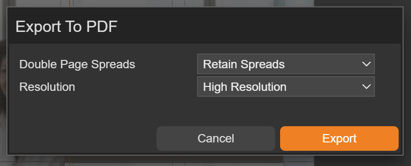 Two options are available when exporting to PDF.