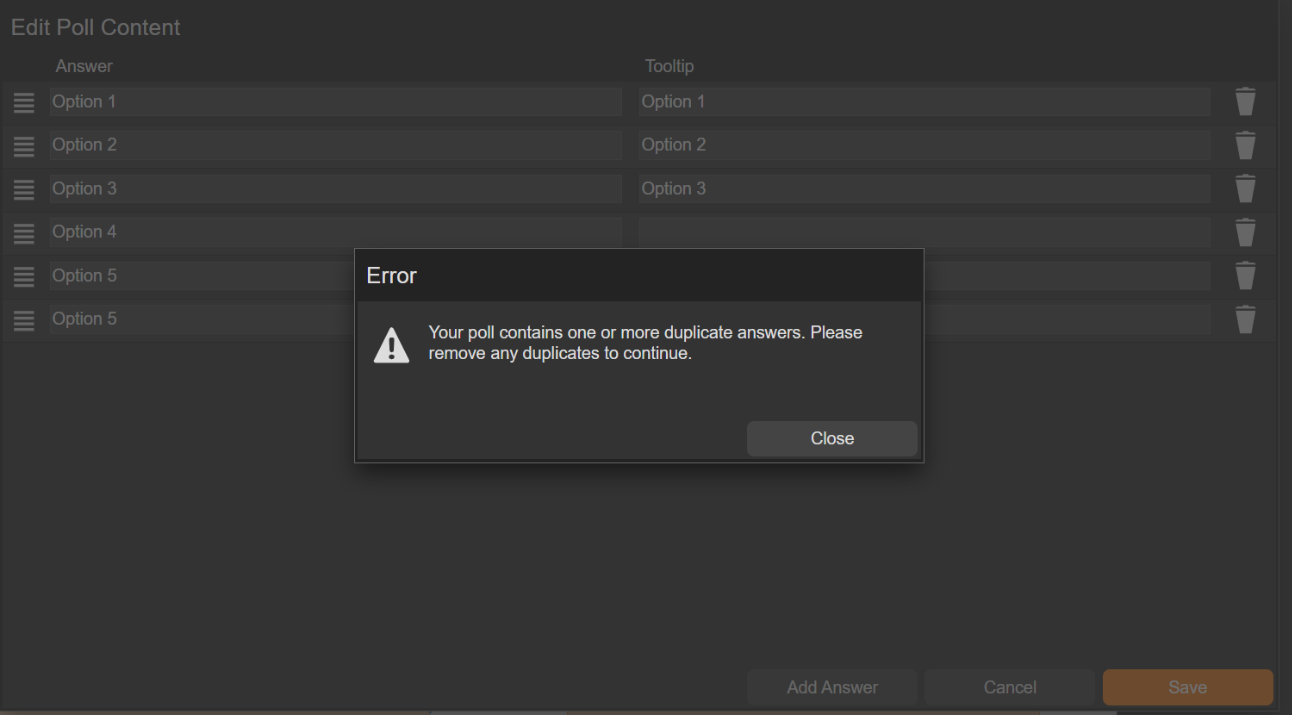 In addition, if two poll answers are the same, the error message is now much clearer.
