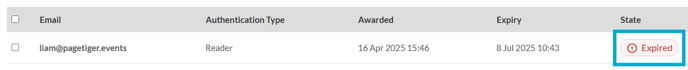 - Once done, the badge status will change from 'Awarded' to 'Expired'.
