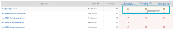 - The Course Analytics will display a warning icon for the expired badge.