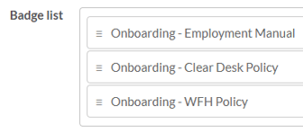 Steve has selected the Badges that are associated with the onboarding documents that all new starters must read and acknowledge.