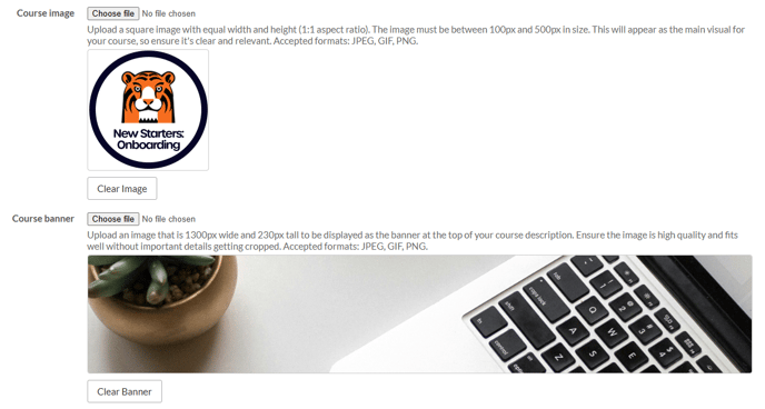 Upload a banner image, which will be displayed as the banner at the top of your course description.