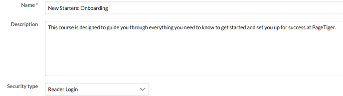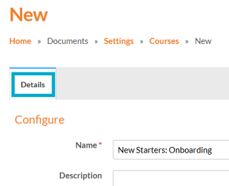 Once selected, you will then see a new screen with a single tab labelled 'Details', where you can begin setting up your course. Here, you can enter a course name and description and apply a security rule. You can also upload an image and banner to make your course on-brand!