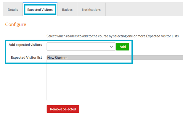 When your Expected Visitor Lists have been chosen, you can begin adding Badges. These are what your visitors must be awarded in order to complete the course.