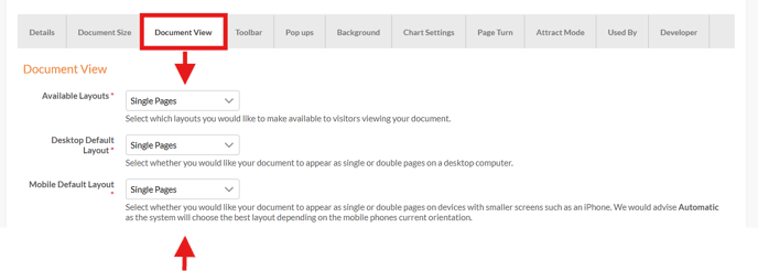 Under the Document View tab, set your pages to display in single-page mode rather than double-page (book style).