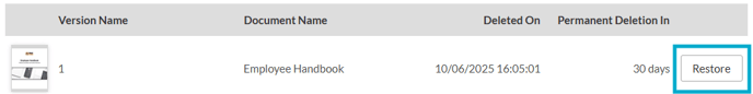 - Full Access users can restore document versions that they have deleted.
