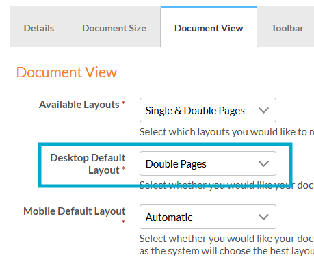 - If you have created your own Style, make sure 'Double Pages' is selected for 'Desktop Default Layout'.