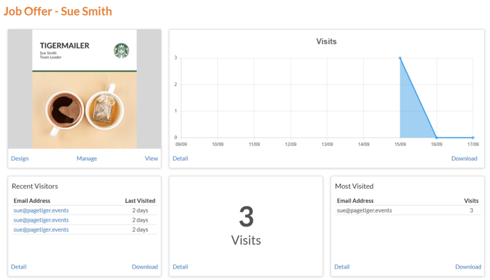 - The analytics page will then open, allowing you to view the reporting for the document when it was accessed via the mailing.
