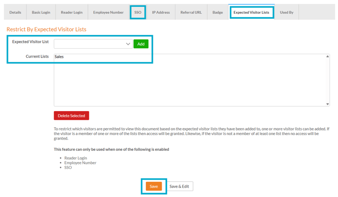 Using SSO with an Expected Visitor List