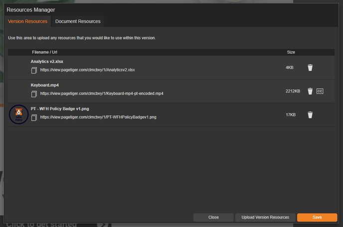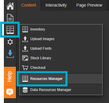 This will then open the Resources Manager, where you can upload and manage files, such as images, PDFs, and videos, to use in the interactivity of your document.